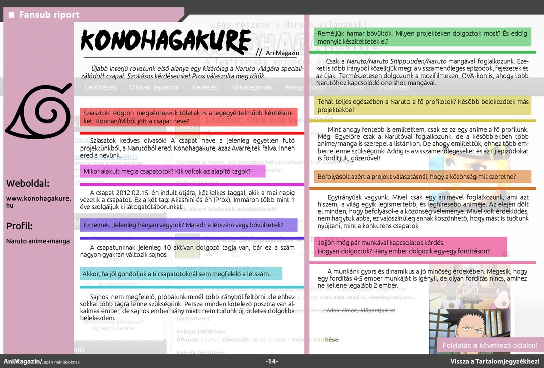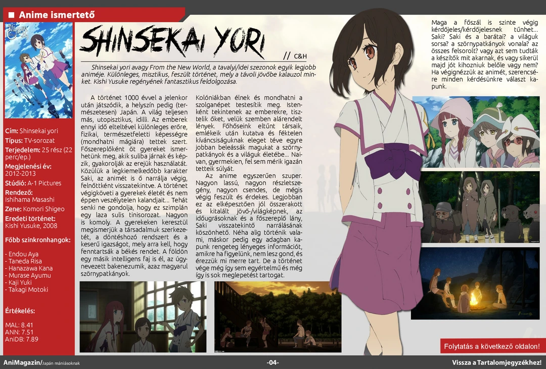 Shinsekai yori és Noir ismertető, Konohagakure és Anime Series interjú, apró szelet Japán, Rjúkjú királyság, szumó, szezon ajánlók, Bakemonogatari light novel fordítás, hentai töri, Mondocon beszámoló és rengeteg más szuper cikk várja olvasóit az ingyenes online AniMagazin legújabb számában!