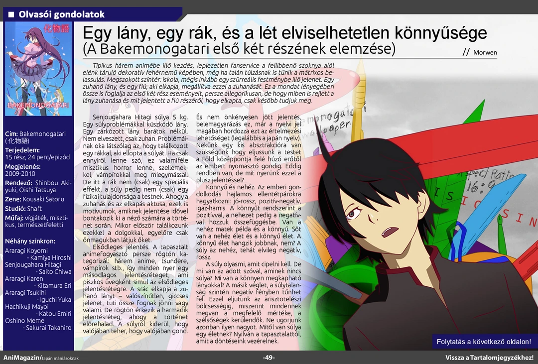• Egy lány, egy rák és a lét elviselhetetlen könnyűsége – A Bakemonogatari első két részének elemzése - Morwen
