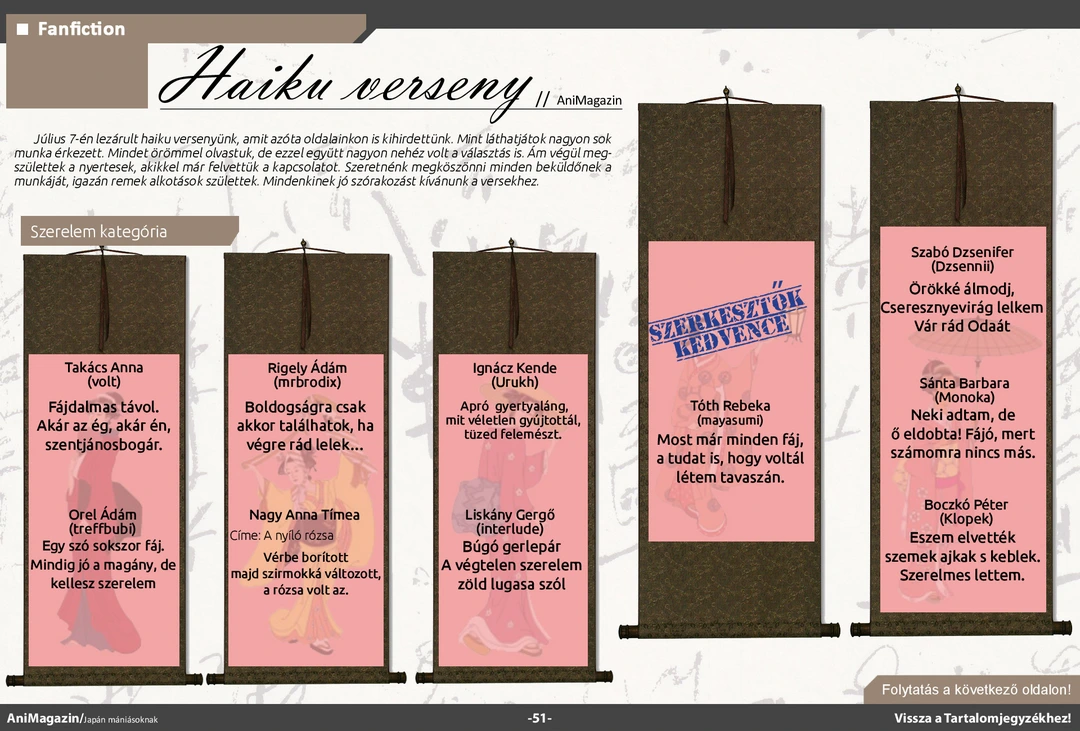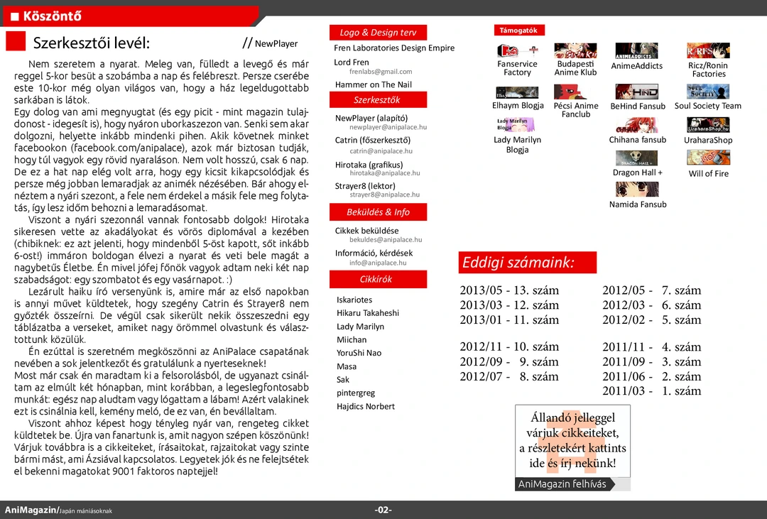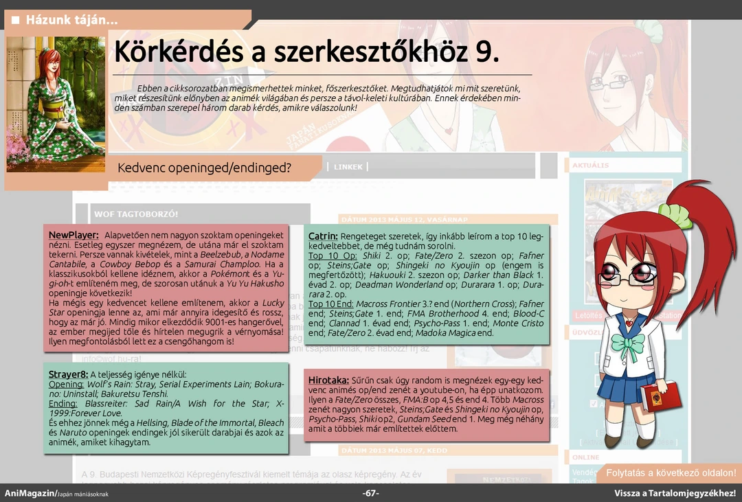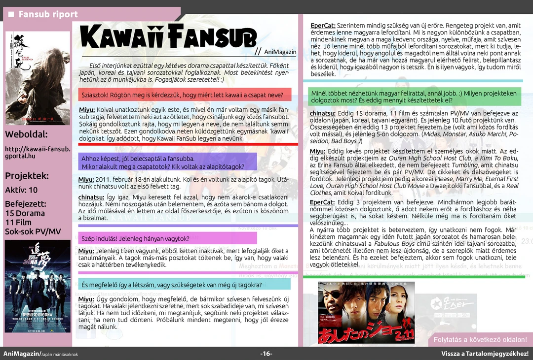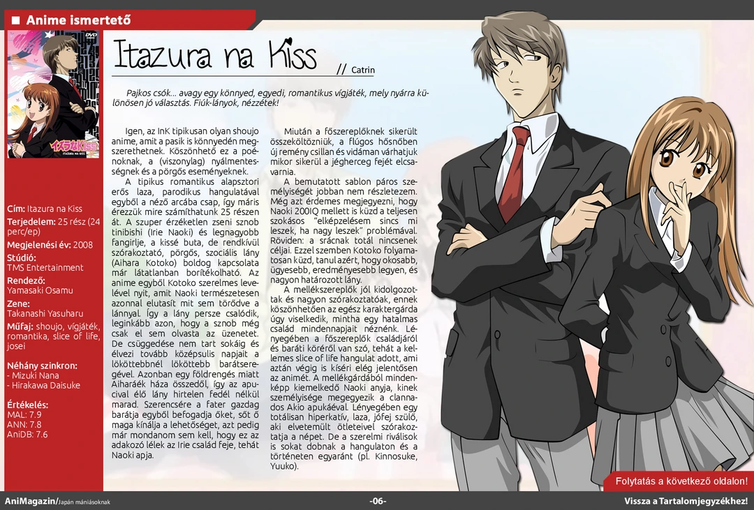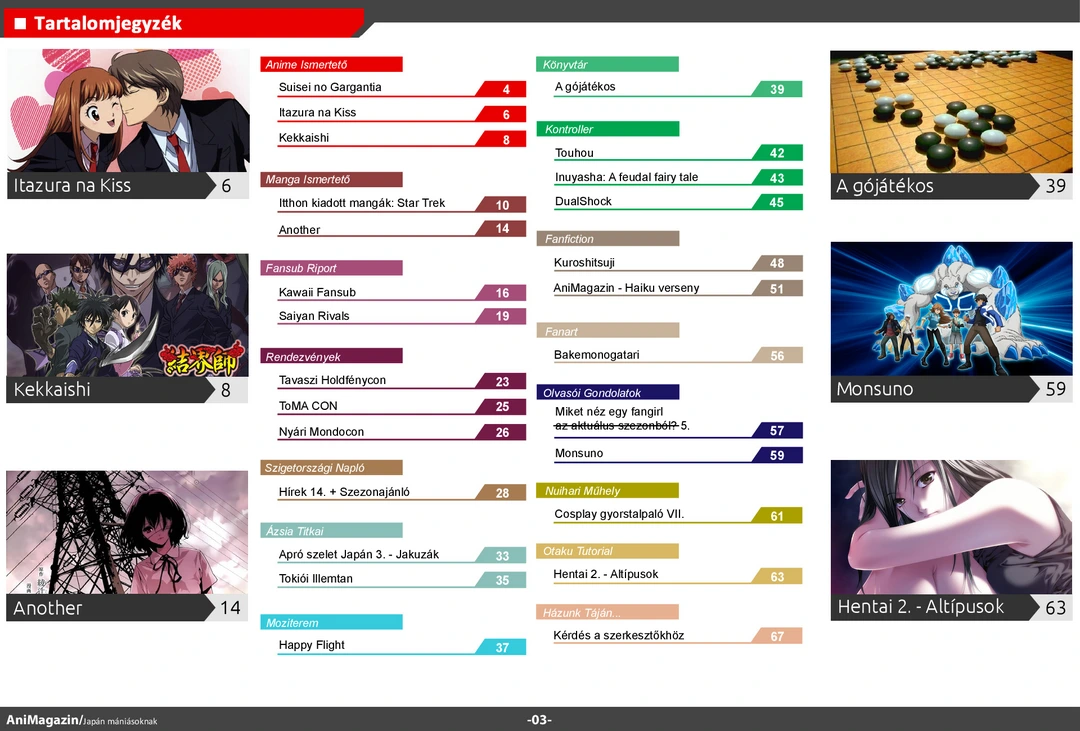 Itazura na Kiss és A gójátékos ismertető, Kawaii FanSub és Saiyan Rivals interjú, bemutató a jakuzákról, a hentai típusokról és a DualShockról, conbeszámolók, haiku játékunk beküldött munkái és rengeteg más szuper cikk várja olvasóit az ingyenes online AniMagazin legújabb számában!