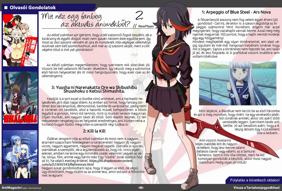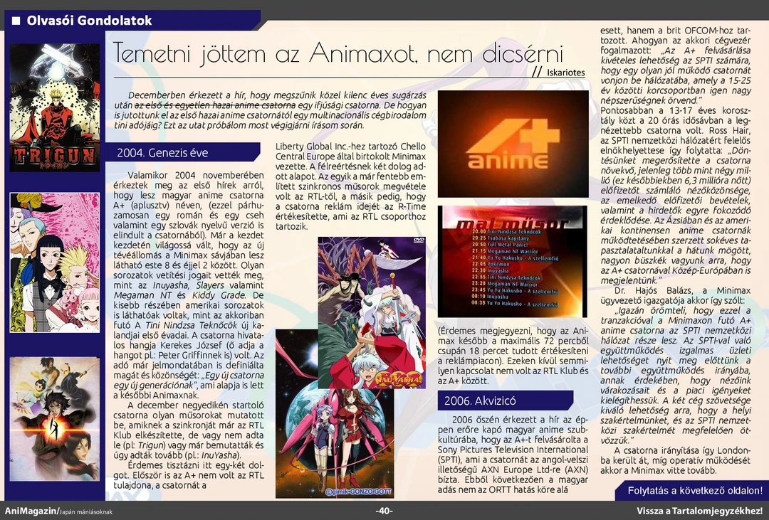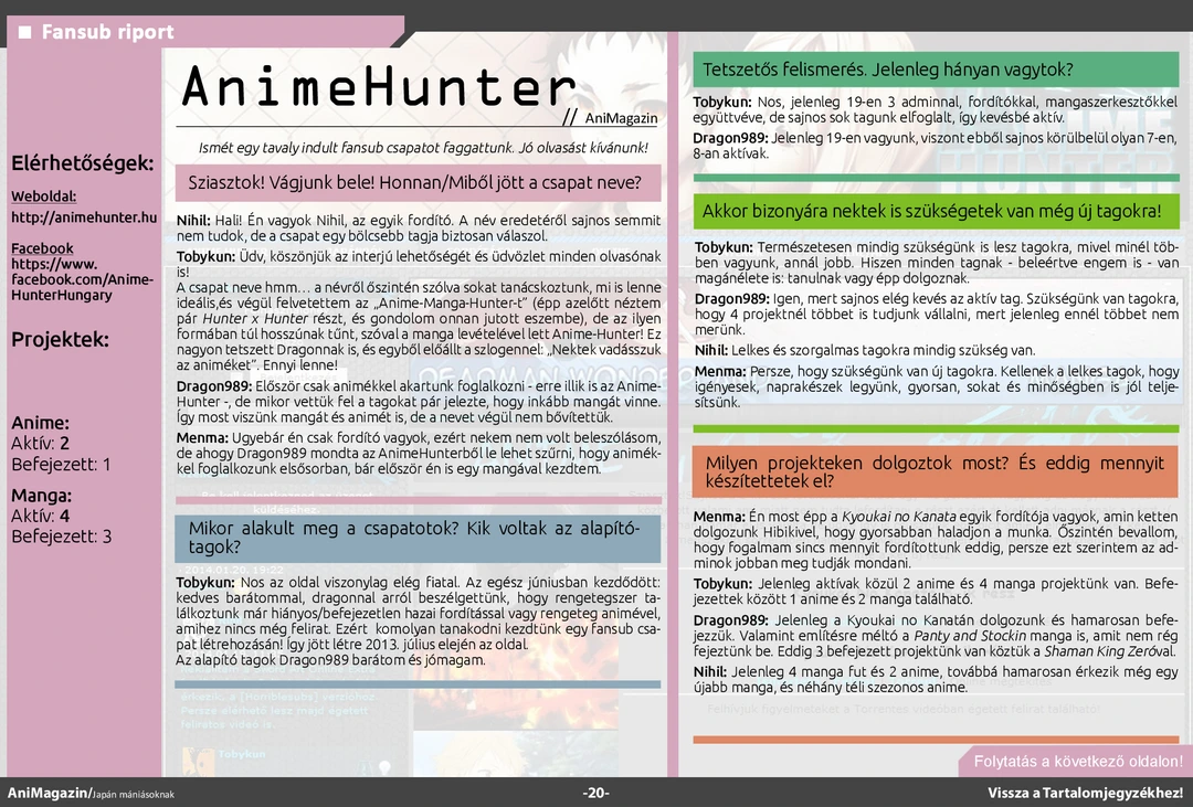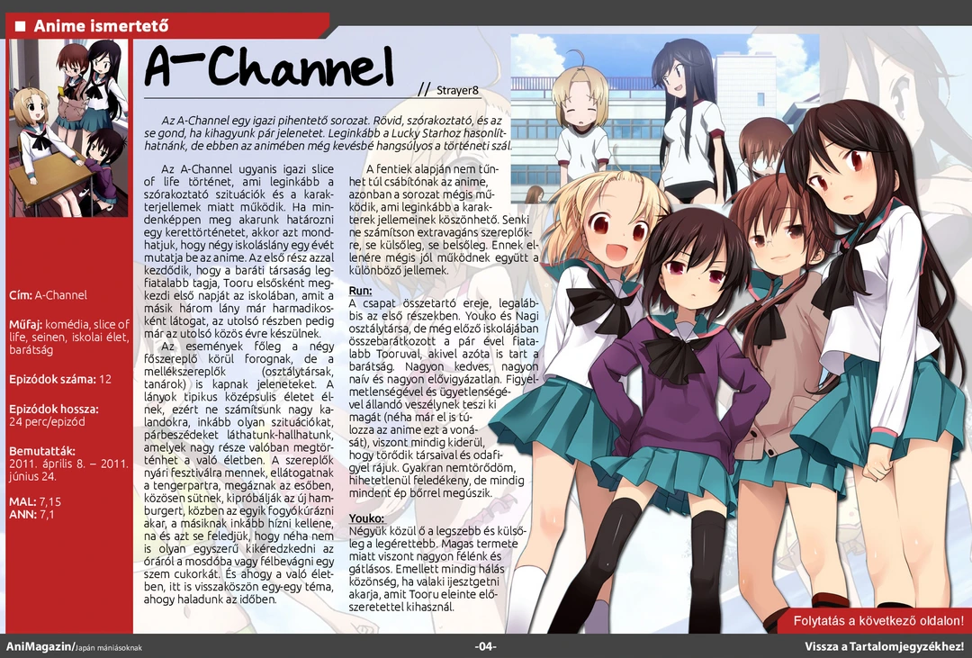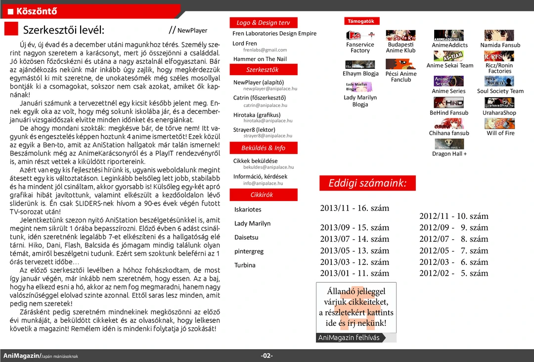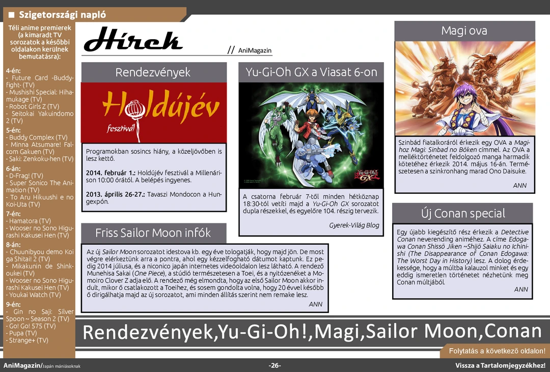 Akagi-Kaiji, Azumanga és Ben-to ismertető, AnimeHunter interjú, bemutató a japán olimpiákról, az Animaxról és a Genji monogatariról, Animekarácsony és PlayIT beszámolók, fanboy rovat és rengeteg más szuper cikk várja olvasóit az ingyenes online AniMagazin legújabb számában!