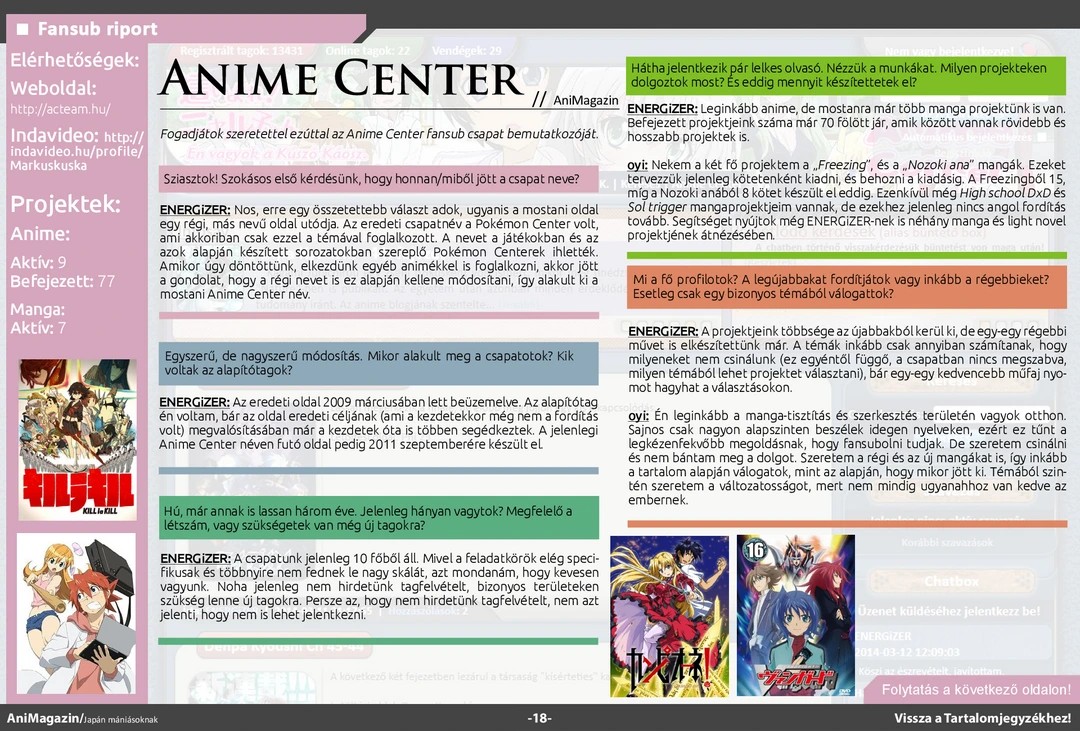 Március 20-án megjelent a magazin 18. száma, mellyel betöltötte 3. életévét. Olvassátok, véleményezzétek, jó szórakozást hozzá!