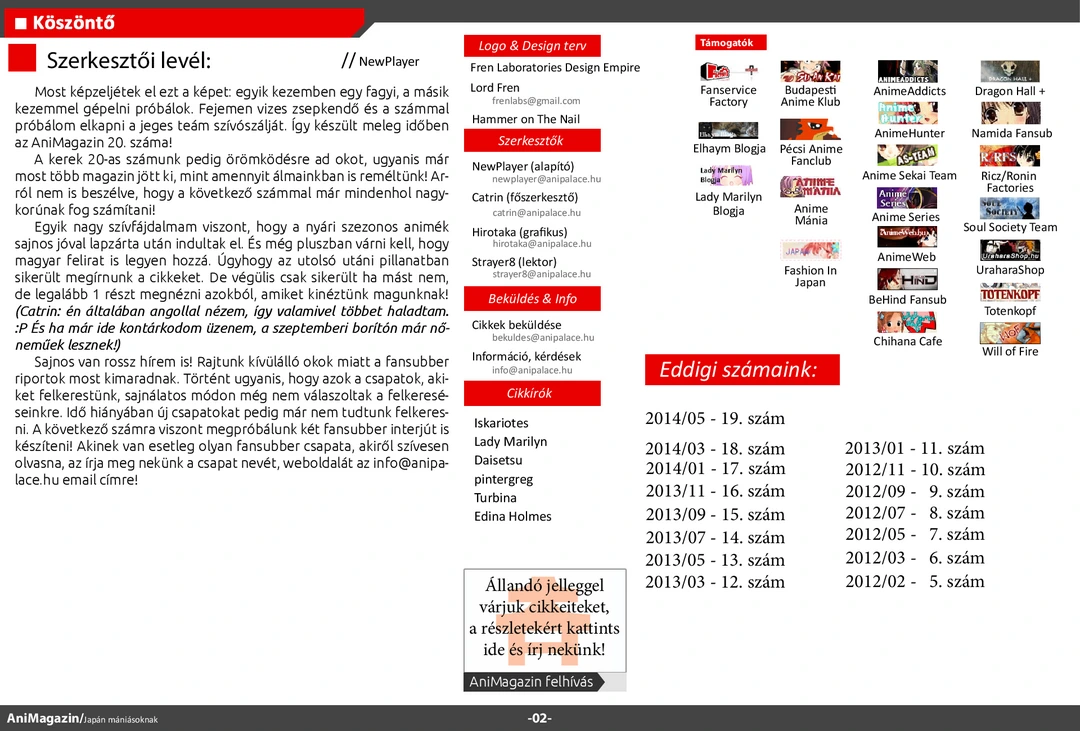 Július 22-én megjelent a magazin 20. száma. Olvassátok, véleményezzétek, jó szórakozást hozzá!
