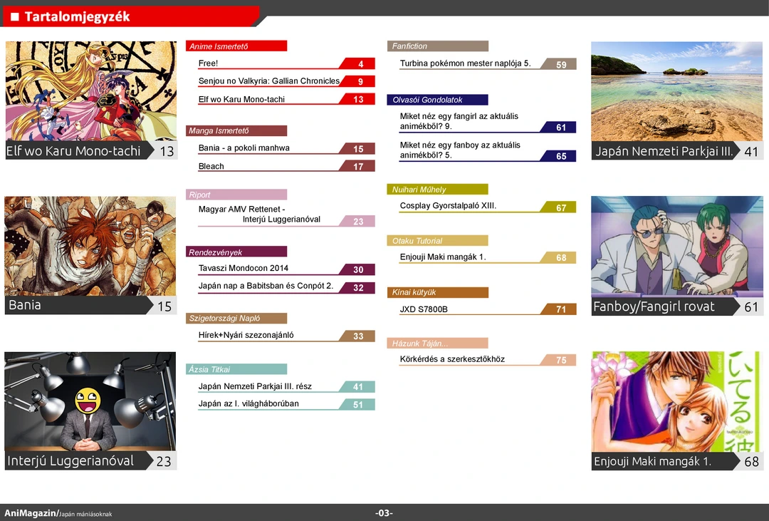 Valkyria Chronicles és Elf wo Karu Monotachi ismertető, interjú Luggerianóval a Magyar AMV Rettenetről, Japán az I. világháborúban, Mondocon beszámoló, fangirl&fanboy rovat a nyári szezon pár animéjéről, Enjouji Maki erotikus josei mangái és rengeteg más szuper cikk várja olvasóit az ingyenes online AniMagazin legújabb számában!