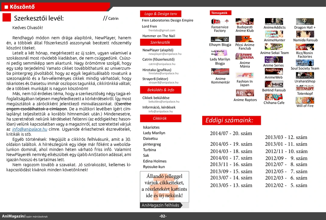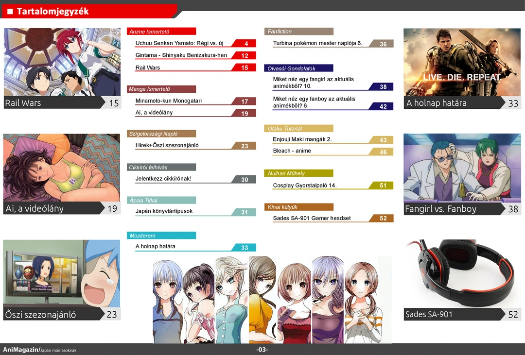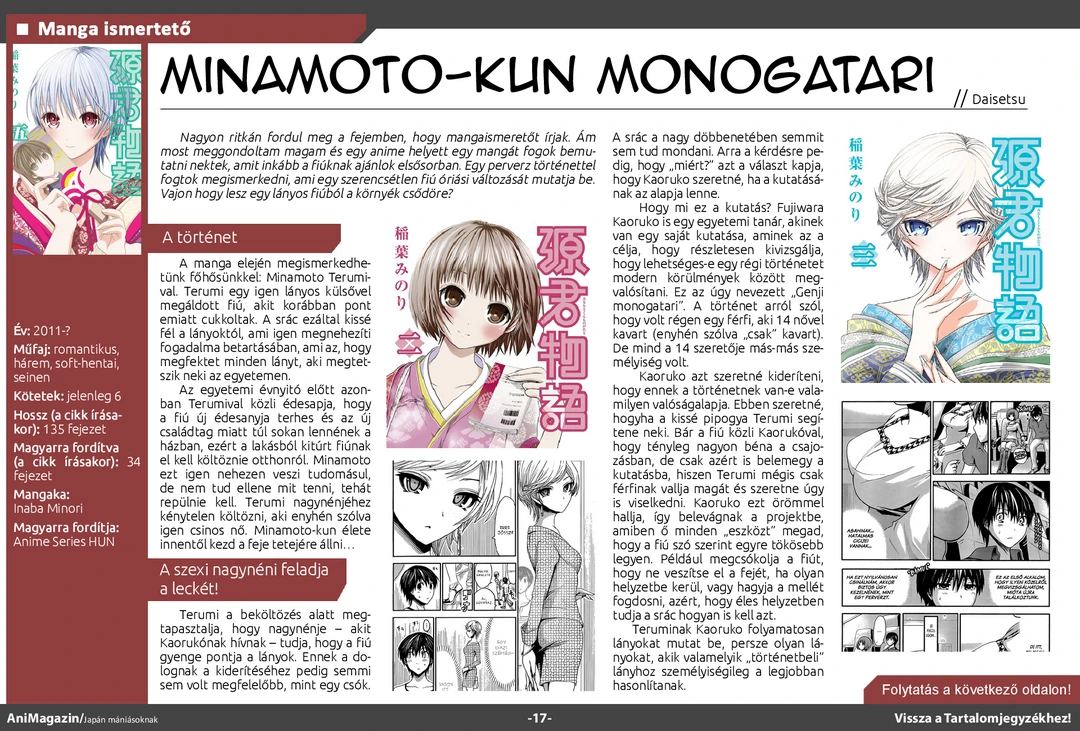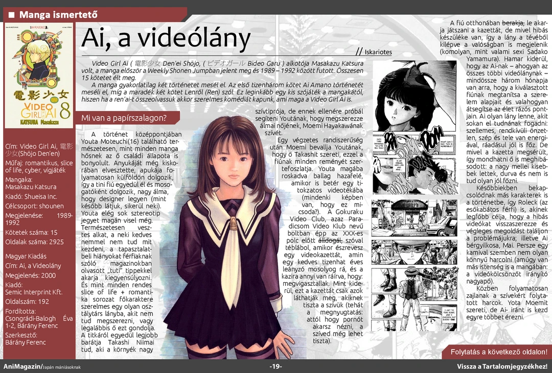 Yamato akkor és most, Ai, a videólány és Minamoto-kun Monogatari ismertető, fangirl&fanboy rovat a nyári szezon pár animéjéről és az őszi tervekről, valamint Enjouji Maki erotikus josei mangáinak befejező cikke az ingyenes online AniMagazin legújabb számában! Szeptember 23-án megjelent a magazin 21. száma. Olvassátok, véleményezzétek, jó szórakozást hozzá!
