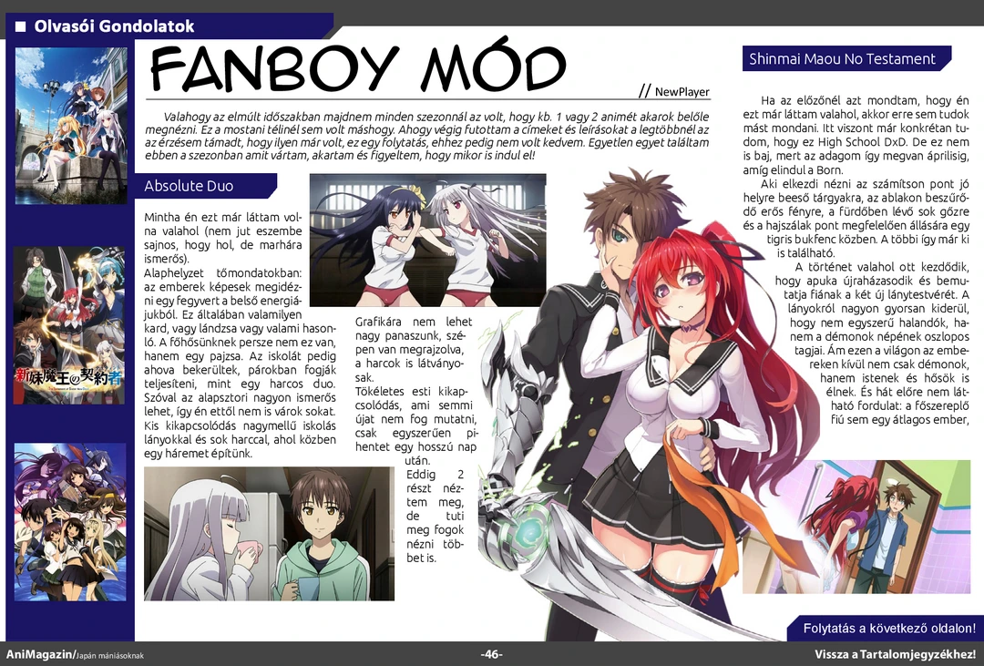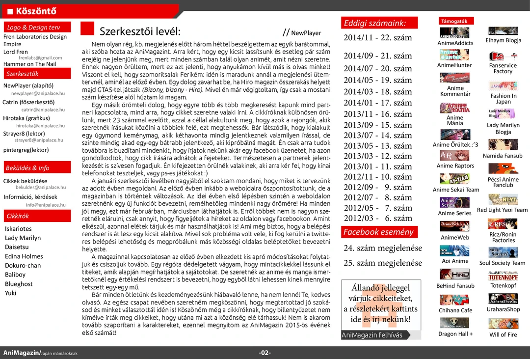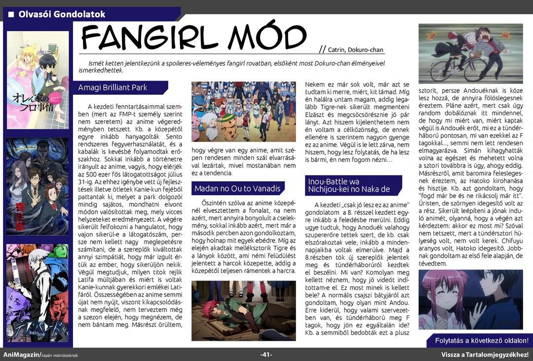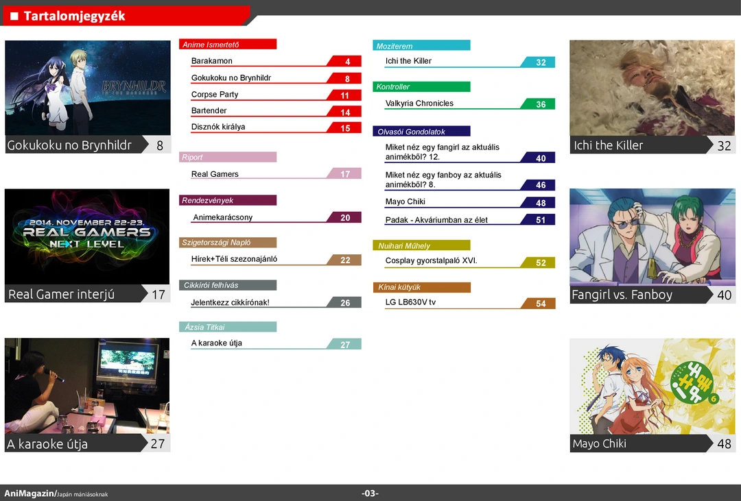 Barakamon, Bartender és Brynhildr ismertető, Animekarácsony beszámoló, Real Gamers interjú, fangirl&fanboy rovat az aktuális animékről, valamint film-, játék- és további bemutatók az ingyenes online AniMagazin legújabb számában! Január 26-án megjelent a magazin 23. száma. Olvassátok, véleményezzétek, jó szórakozást hozzá!
