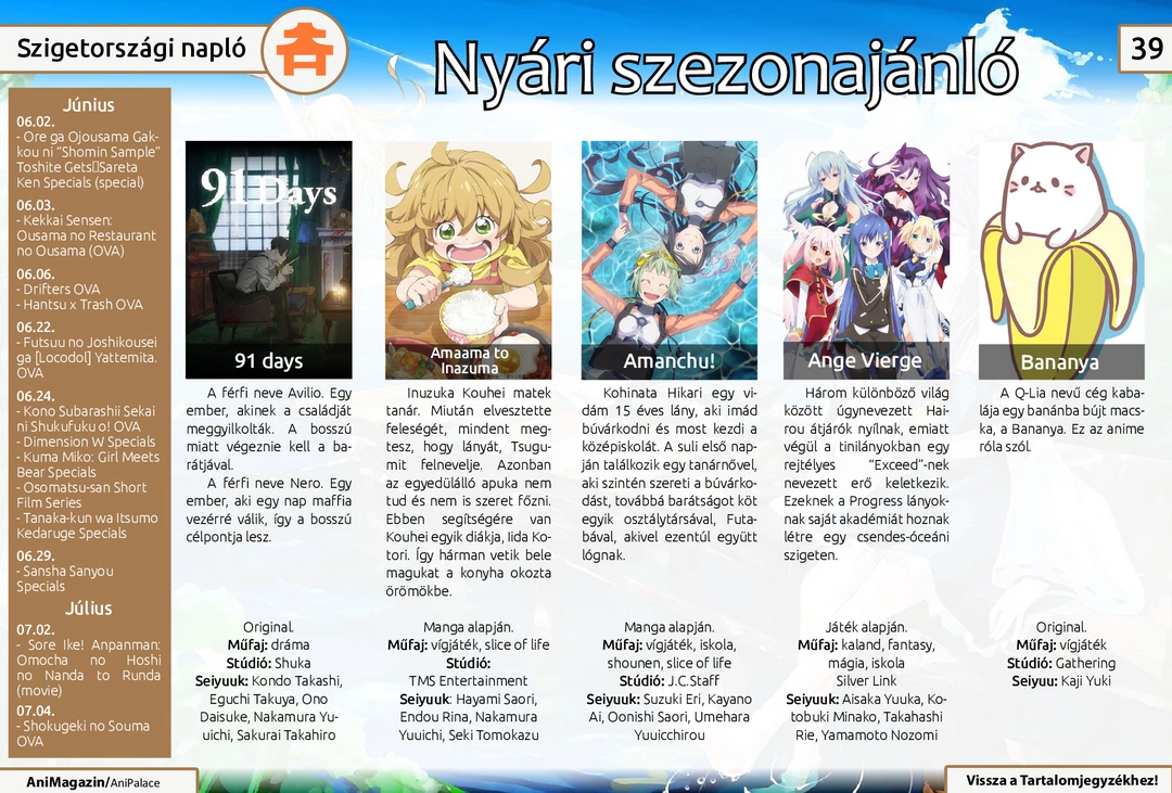 Glass no Kamen, Pochamani és Say “I Love You” ajánló, Dobri Andor vlogger interjú, Megtalálni Japánt könyv és Harlequin-mangák bemutató, zene, figura és cosplay rovat, tavaszi szezon vélemények, nyári szezonajánló és további cikkek várnak az ingyenes online AniMagazin legújabb számában!