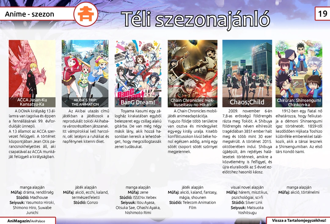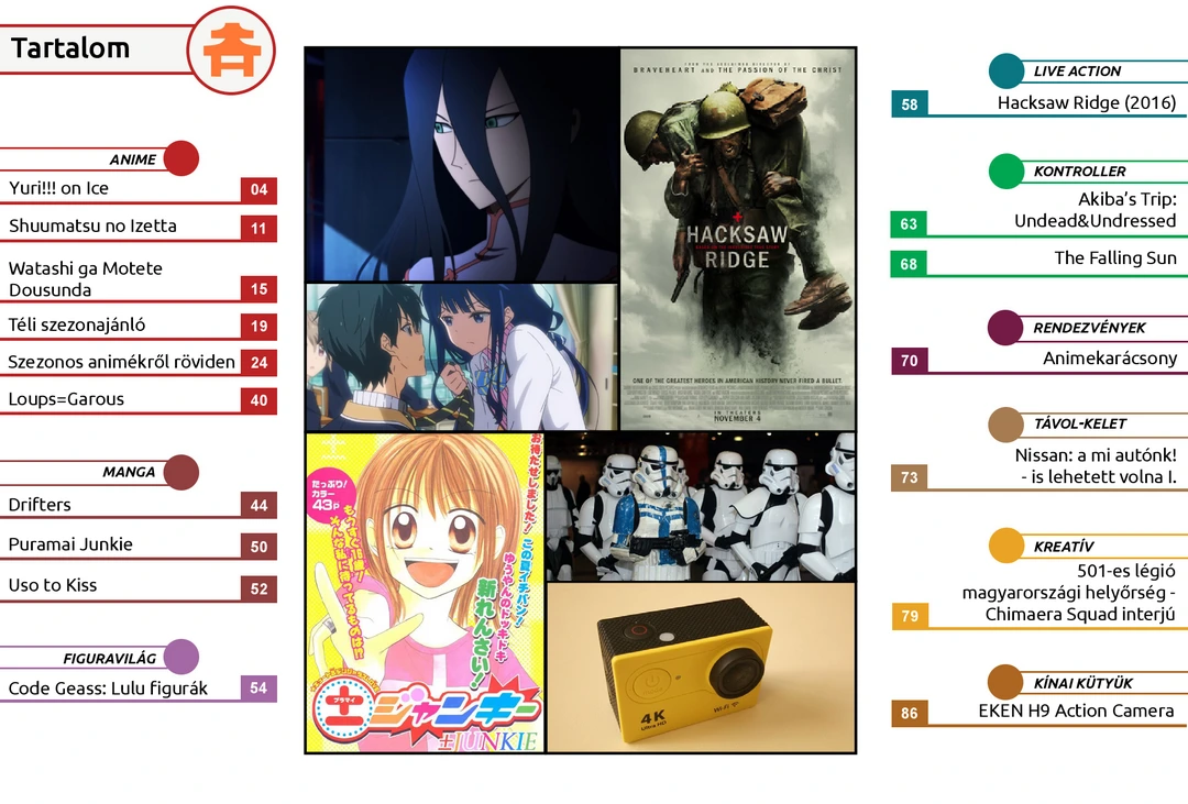 Shuumatsu no Izetta, Watashi ga Motete Dousunda és Drifters ajánló, Animekarácsony beszámoló, Akiba’s Trip játékbemutató, 501-es légió cosplay interjú, téli szezon vélemények, Code Geass figurák bemutató és további cikkek várnak az ingyenes online AniMagazin legújabb számában!