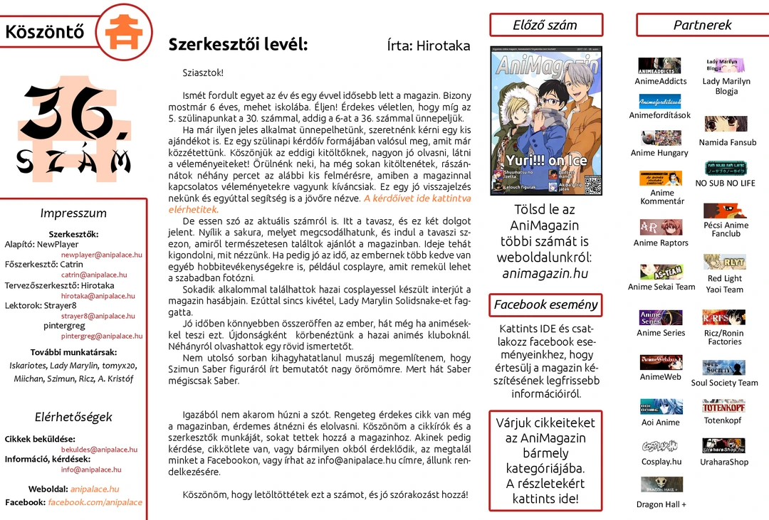 Március 21-én megjelent a magazin 36., egyben szülinapi száma. Hat évesek lettünk, ebből az alkalomból készítettünk egy kérdőívet közvéleménykutatás céljából. Köszönjük az eddigi kitöltőknek, és kérjük, hogy akik még nem tették meg, szánjanak rá egy kis időt, ezzel segítve a magazin munkáját.