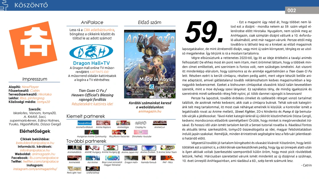 Január 20-án megjelent a magazin 59. száma. Jó szórakozást hozzá!