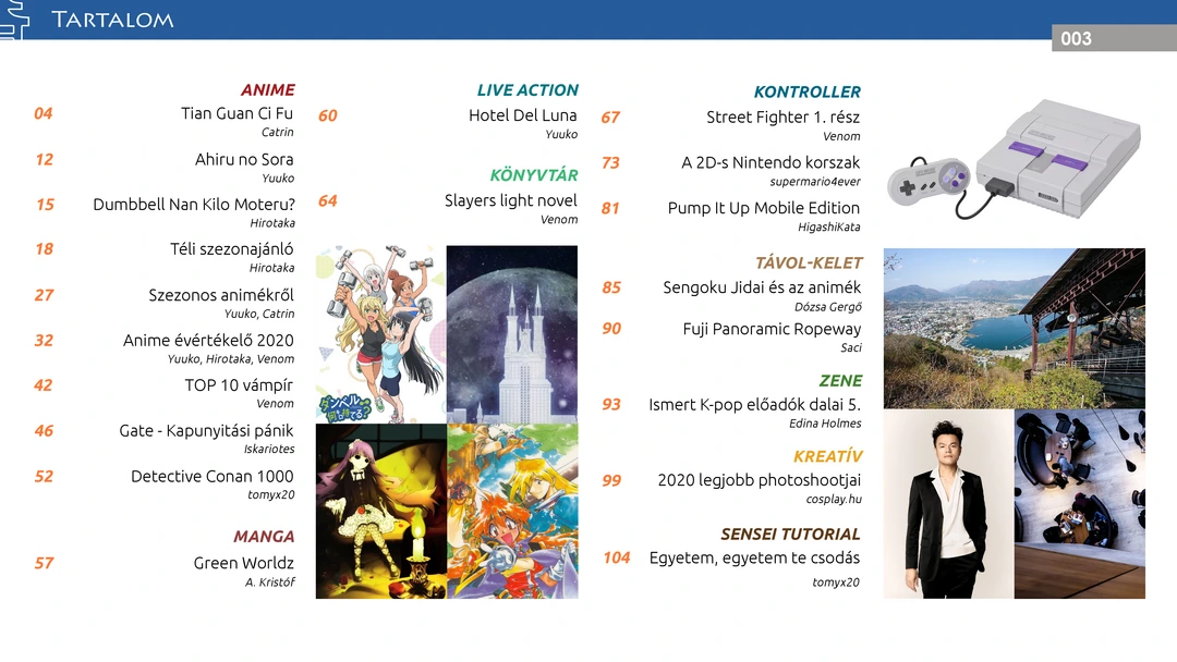 Ahiru no Sora, Dumbbell, GATE és téli szezonos ajánlók, TOP 10 vámpír karakter, 2020-as animés évértékelő, 1000. epizódjához érkezik a Detective Conan, folytatódik a K-pop rovat és a Nintendo bemutató, Street Fighter és Pump it Up játék ismertetők, összeállítás az idén induló japán szakokról a magyar felsőoktatásban, valamint további remek cikkek az ingyenes online AniMagazin legújabb számában!