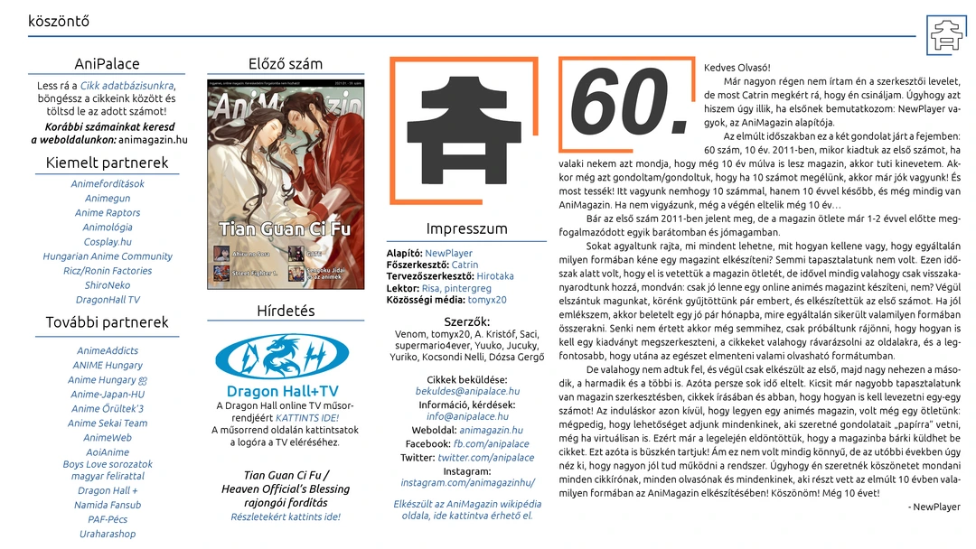 Készültünk egy kis összefoglaló videóval is az eddigi 10 év 60 számáról, amit itt tekinthettek meg.
