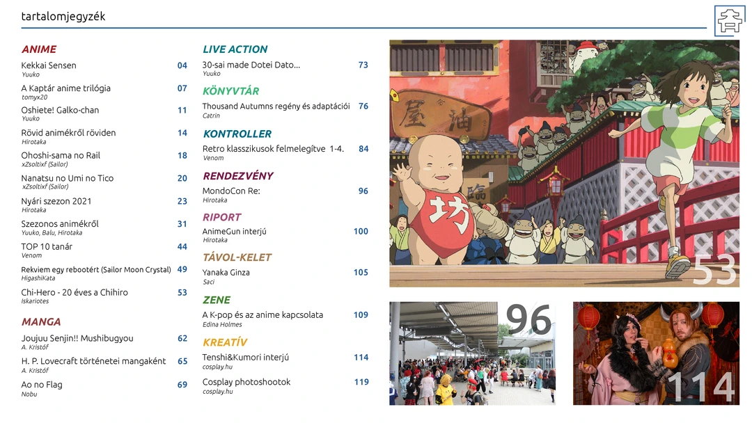 Kekkai Sensen, Oshiete! Galko-chan és nyári szezonos ajánlók, TOP 10 tanár karakter, anime vélemények 30 tavaszi és nyári szezonos animéről, retro és rövid anime bemutatók, megemlékezés a 20 éves Chihiro filmről és ismertető a K-pop és az animék kapcsolatáról, interjú Tenshi&Kumori cosplayerekkel és az AnimeGun csapatával, MondoCon beszámoló, manga, dorama és játék ajánlók és további remek cikkek az ingyenes online AniMagazin legújabb számában!