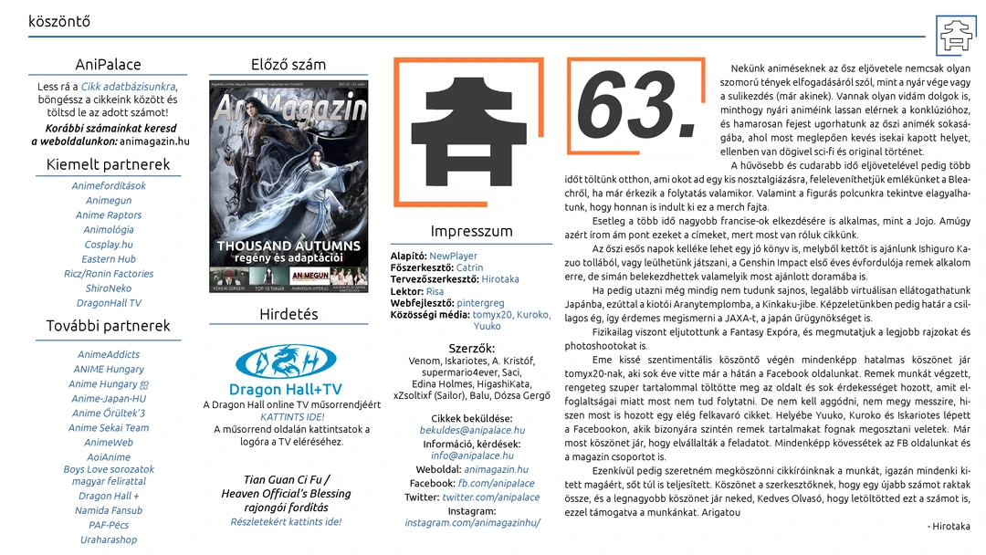 Szeptember 22-én megjelent a magazin 63. száma. Jó szórakozást hozzá!