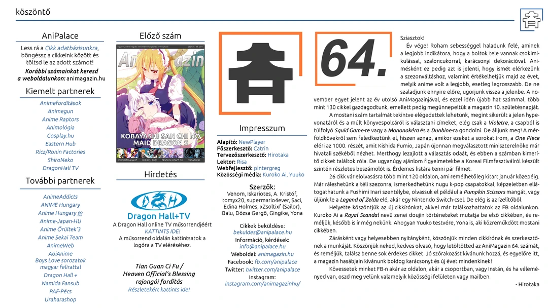 November 24-én megjelent a magazin 64. száma. Jó szórakozást hozzá!