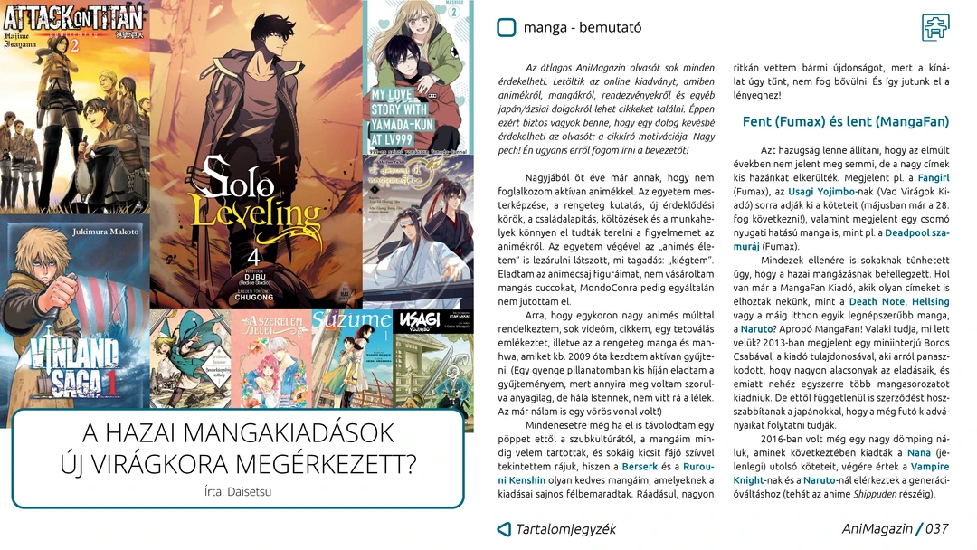 Mono, Lazarus, Kyou Kara Maou!, valamint tavaszi és nyári szezonos anime ajánlók, a hazai mangakiadások új virágkora, Hikaru ga Shinda Natsu, Reiri és Twisted Wonderland manga, valamint BJ Alex és Jinx manhwa ajánlók, Death’s Game sorozat, retrójáték- és PS5 bemutatók, interjú cosplay szervezőkkel, MondoCon beszámoló és további remek cikkek az ingyenes, online AniMagazin legújabb számában!