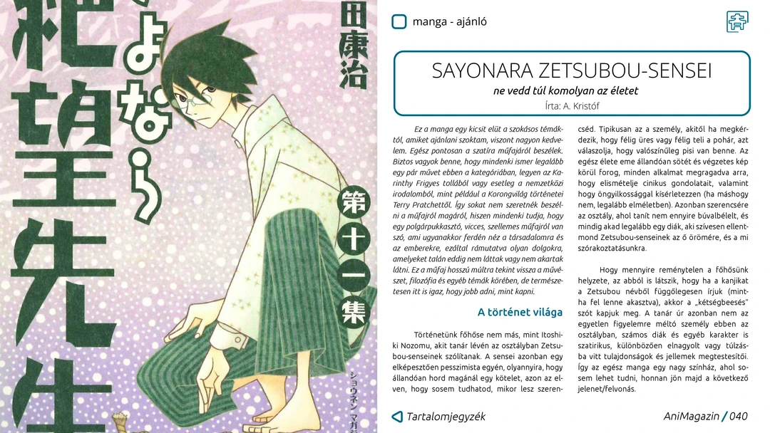 Zatsu Tabi, Shakunetsu Kabaddi, Dr. Stone, Sanrio Danshi, valamint retró és nyári szezonos anime ajánlók, Rick és Morty anime kritika, interjú a Fumax Kiadóval, Sayonara Zetsubou Sensei és Homunculus manga, valamint Another Typical Fantasy Romance manhwa ajánlók, The Haunted Palace sorozat és japán túra/hegymászás történelem bemutatók, Budapest Comic Con és MondoCon beszámolók, valamint további remek cikkek az ingyenes, online AniMagazin legújabb számában!